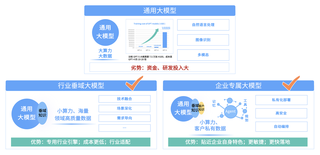 通用大模型与行业垂域大模型、企业专属大模型优劣对比