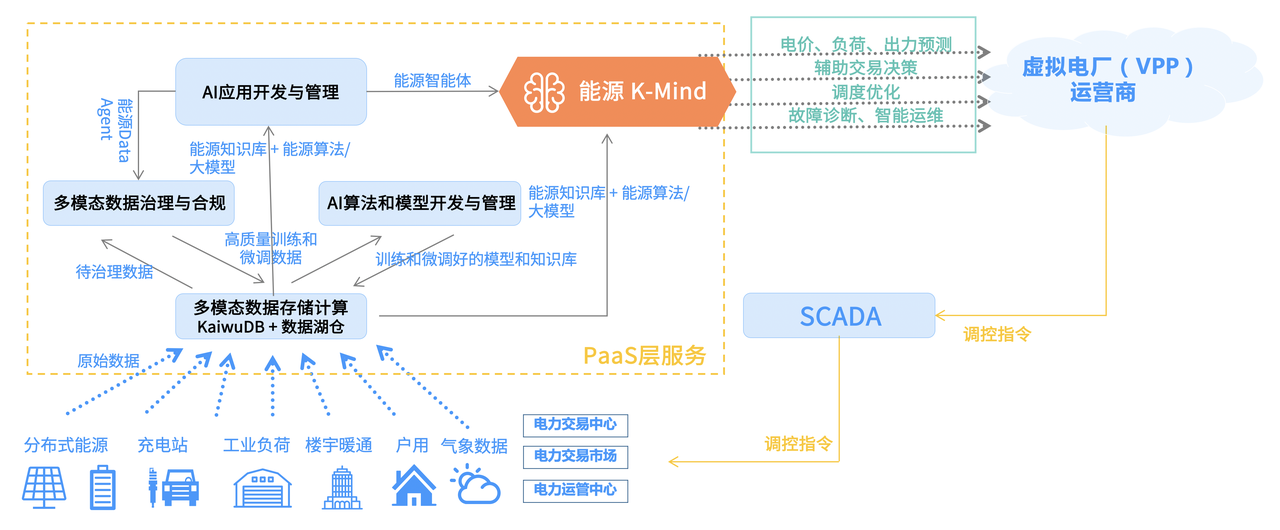 在能源行业,K-Mind 能源业务大脑能够支撑虚拟电厂(VPP)的运行,通过电价、负荷、出力预测,辅助交易决策,实现调度优化与故障诊断。