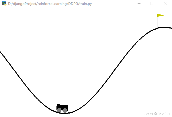 基于 OpenAI 的 gym 环境完成一个推车游戏,目标是将小车推到山顶旗子处。动作维度为1,属于连续值;状态维度为 2,分别是 x 坐标和小车速度。