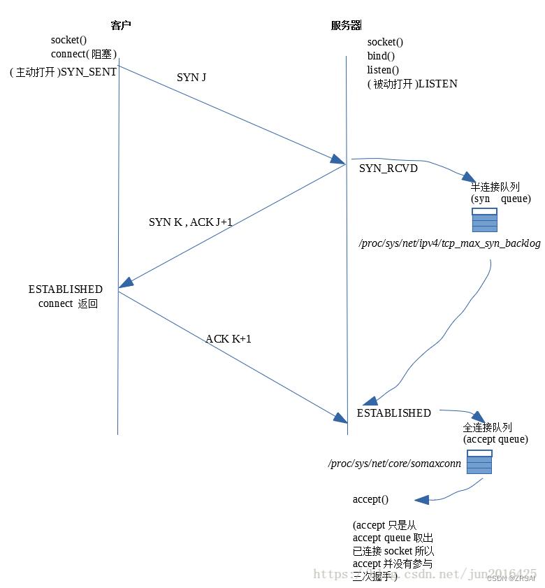 客户端给服务器发送一个SYN段(在 TCP 标头中 SYN 位字段为 1 的 TCP/IP 数据包), 该段中也包含客户端的初始序列号(Sequence number = J)。