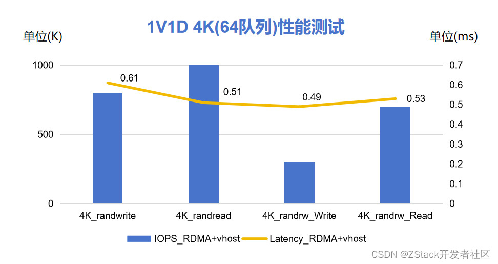 ZSphere+ZStack分布式存储来替代vSphere+vSAN组合。值得一提的是ZSphere通过vhost+RDMA技术对接ZStack分布式存储,可实现出色的性能表现,4K随机读达到百万IOPS,4K随机写达到84+万IOPS。