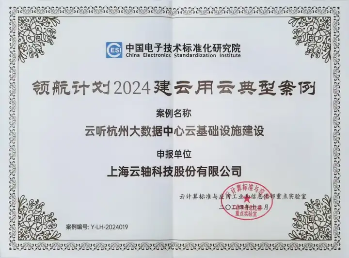 为满足相关行业云化应用的实际标准化需求,2023年电子标准院依托全国信标委云计算标准工作组以及云计算标准与应用工信部重点实验室,开启 “领航计划” 专项活动,并取得诸多成果。在“云建设与应用领航计划(2024)建云用云典型案例”遴选活动中,云轴科技ZStack申报的“中船物资数字化转型云平台”、“云听杭州大数据中心云基础设施建设”两大案例从120+案例中脱颖而出荣获典型案例。