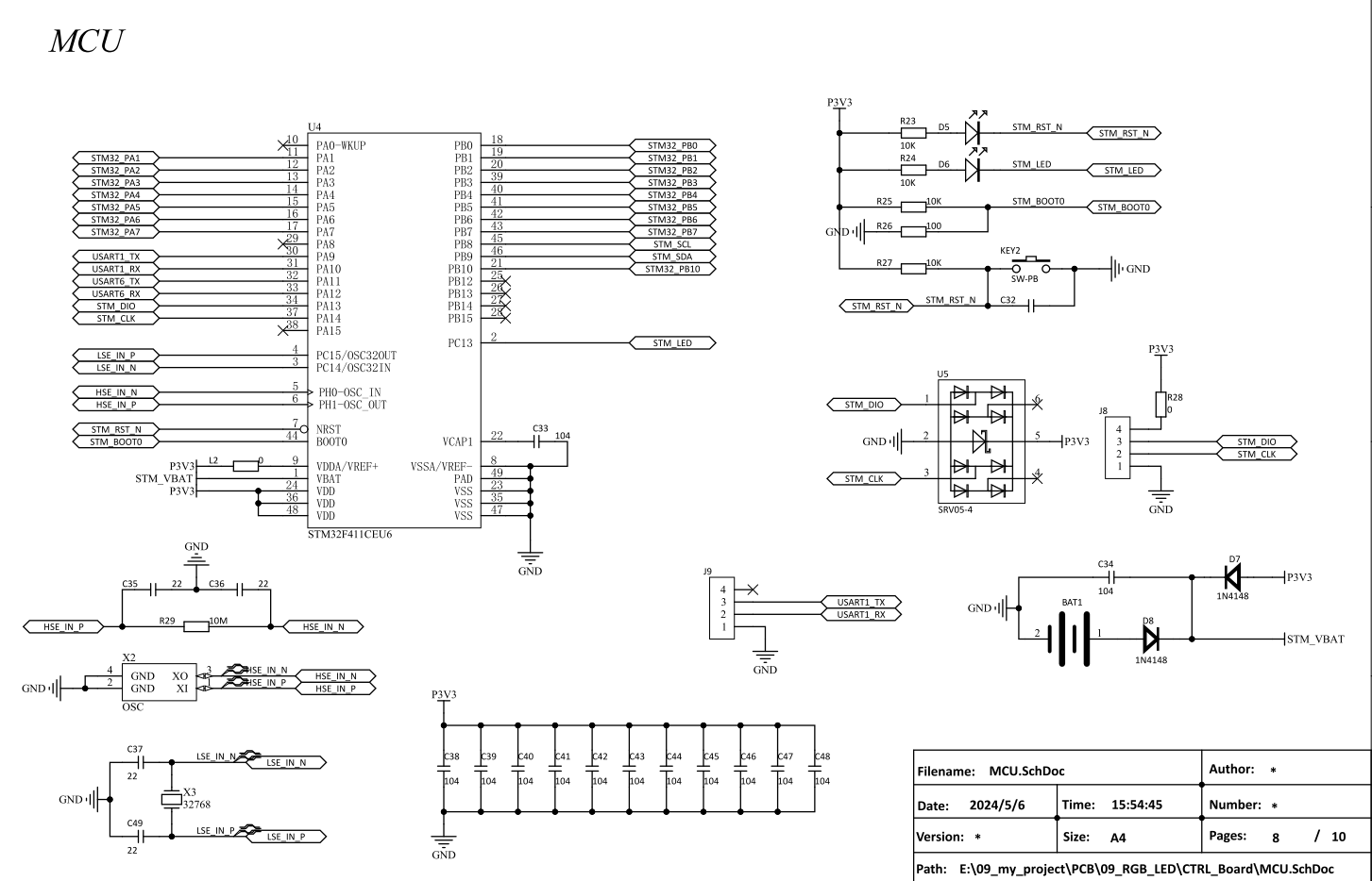 主供电:3.3V,来自系统主电源(TLV62130 降压)