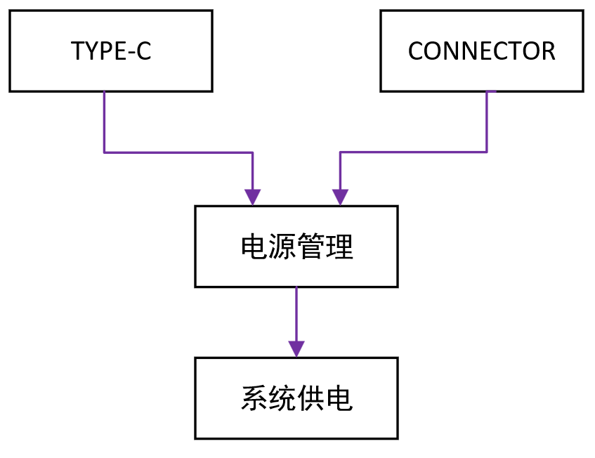 为了兼顾便携性、扩展性和高电流供电能力,本项目采用了多种电源输入方式,结合锂电池供电和高效同步降压管理,确保RGB立方体系统稳定运行。电源拓补图如图2.1所示。