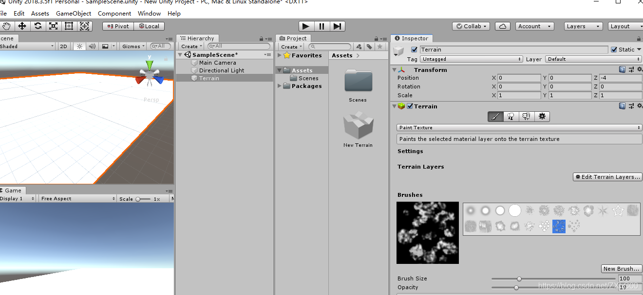 1.在Game Object里面创建一个地形: