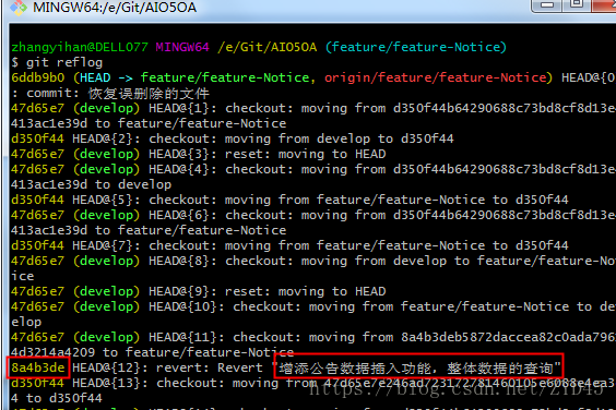 可以看到之前的一些提交操作的commit_id 和 一些备注信息