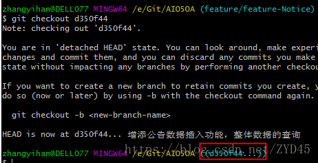 3.找到之前提交备注的hasn值,然后 git checkout commit_id值,