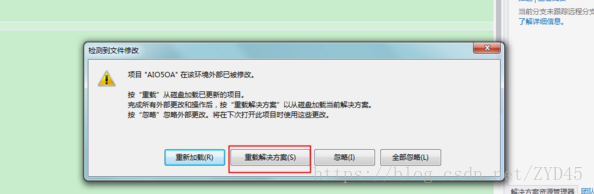 然后,你会发现,当前分支,切换了,在你的VS工具中,也会发现,提示你重加载解决方案
