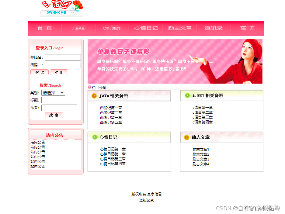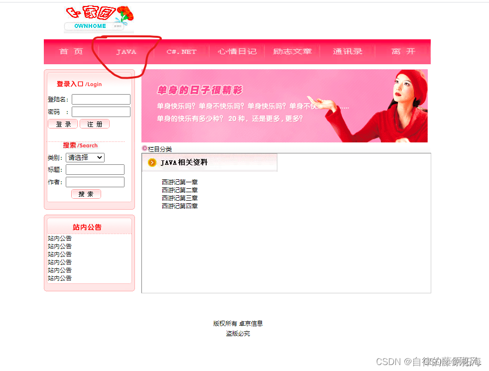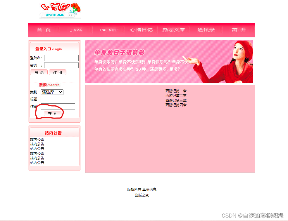 这篇博客详细介绍了网页登录和注册的实现过程,包括表单数据获取、用户信息查询与验证,以及登录成功的页面跳转。同时,也阐述了搜索功能的实现,包括模糊查询方法的调用及结果展示。通过对do界面代码的分析,展示了如何处理用户的登录、注册和搜索请求。