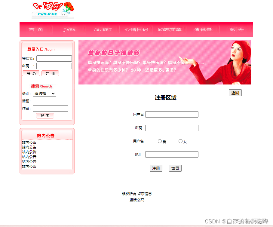 1.点击注册按钮调用Style.display属性隐藏文章区域,显示注册区域