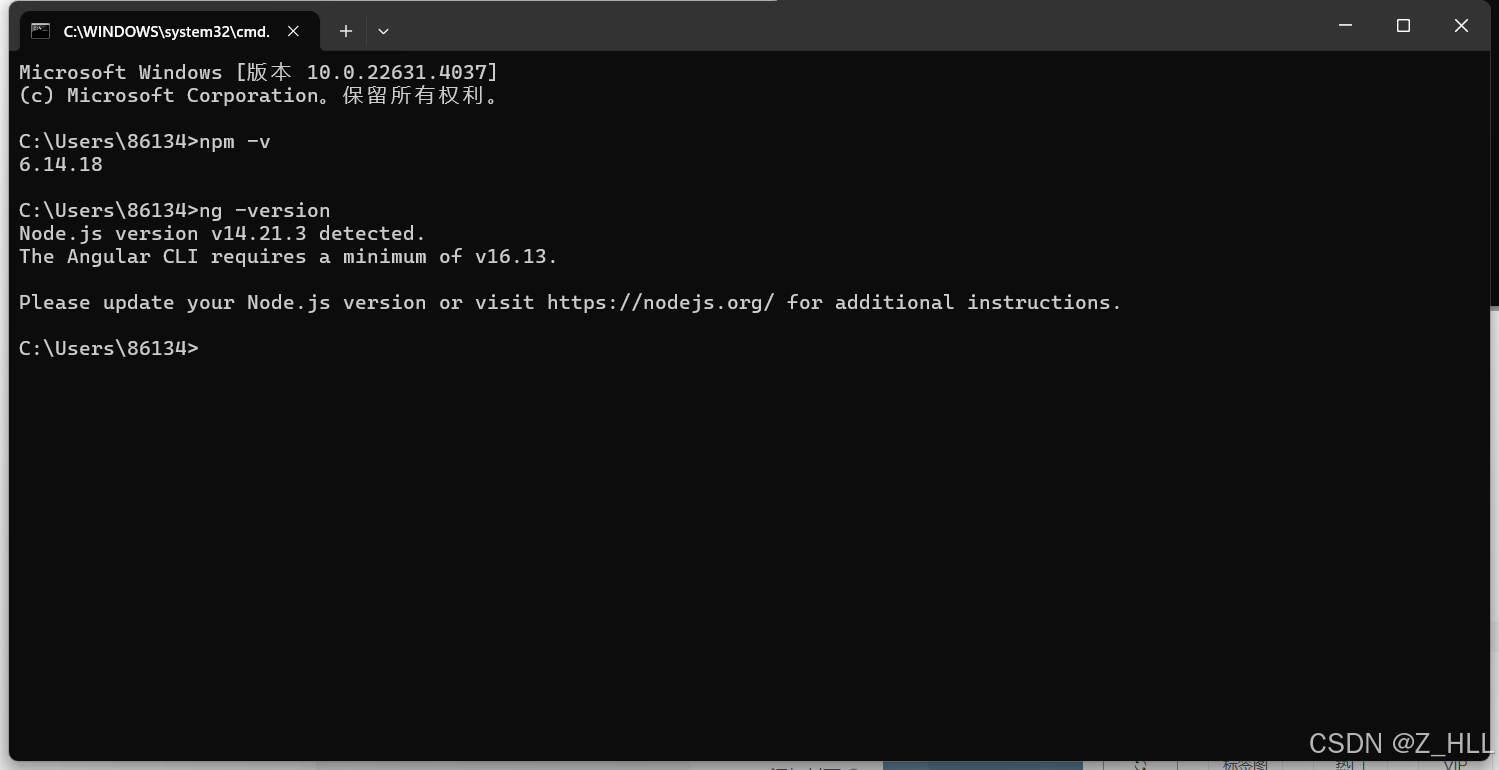 弹出黑框,输入命令,显示以下内容,则表示node安装成功。