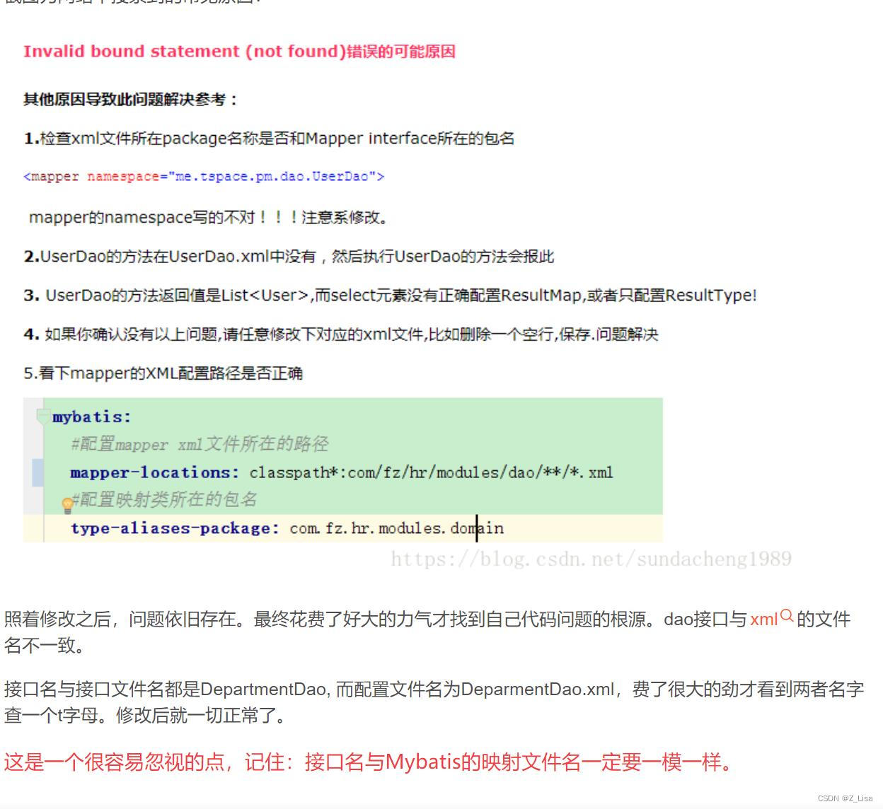 org.apache.ibatis.binding.BindingException: Invalid bound statement (not found)问题,即在mybatis中dao接口与mapper配置文件在做映射绑定的时候出现问题,简单说,就是接口与xml要么是找不到,要么是找到了却匹配不到。
