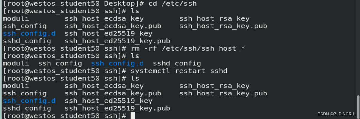 systemctl restart sshd ##重新启动sshd会生成新的密钥