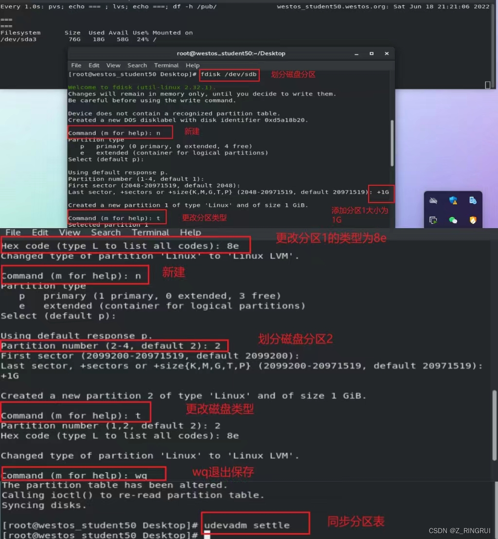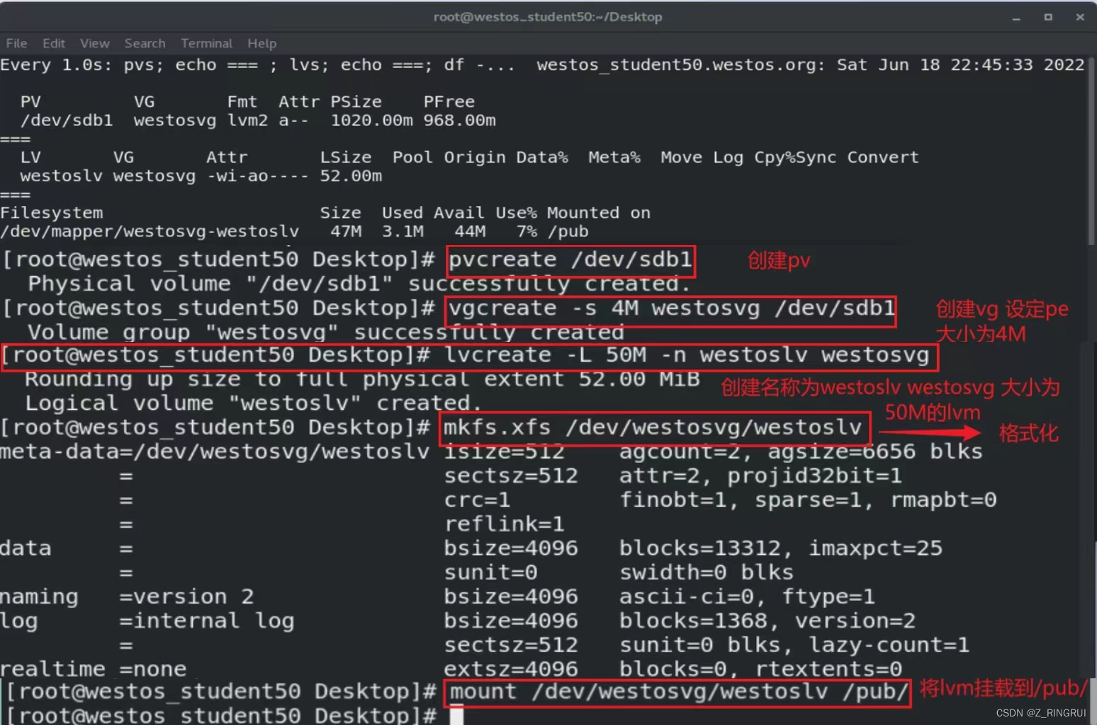 lvcreate -L 50M -n westoslv westosvg ##创建lvm -L指定大小 -n指定名称