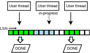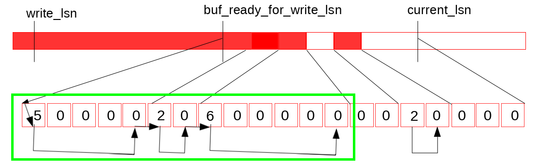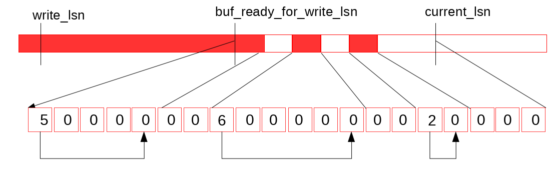 我们通过跟踪已经完成的写log buffer操作(如下图所示的)来解决第二个问题。