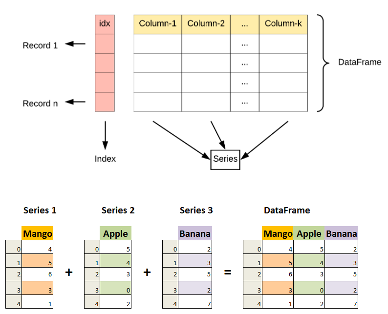 DataFrame 是一个表格型的数据结构,它含有一组有序的列,每列可以是不同的值类型(数值、字符串、布尔型值)。DataFrame 既有行索引也有列索引,它可以被看做由 Series 组成的字典(共同用一个索引)。