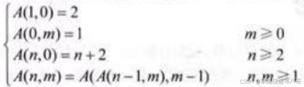 并非一切递归函数都能用非递归方式定义。Ackerman函数。当一个函数及它的一个变量由函数自身定义时,称这个函数时双递归函数。