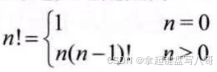 改方程的自变量n的定义域是非负整数。递归式的第一式给出了这个函数的初始值,是非递归定义的。每个递归函数都必须有非递归定义的初始值,否则递归函数无法计算。递归式的第二式用较小的自变量的函数值来表示较大自变量的函数值的方式来定义n的阶乘。
