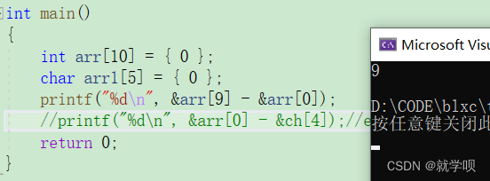 **指针加减指针得到的是元素的个数 可以是一个负数 **
