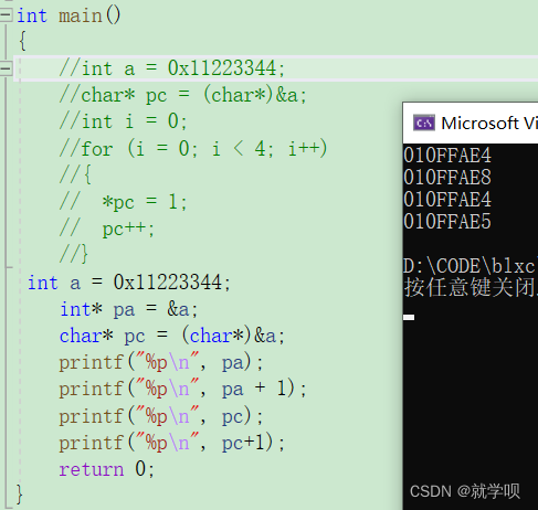 总结: 从这里我们就能看出来 指针的类型决定了指针向前或者向后走一步有多大的距离