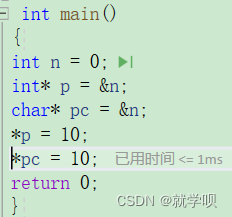 **指针的类型决定了 对于指针进行解引用时能有多大的权限 **