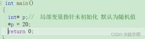 概念: 野指针就是指针指向的位置是不可知的(随机的、不正确的、没有明确限制的)