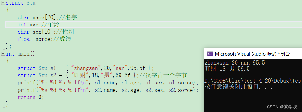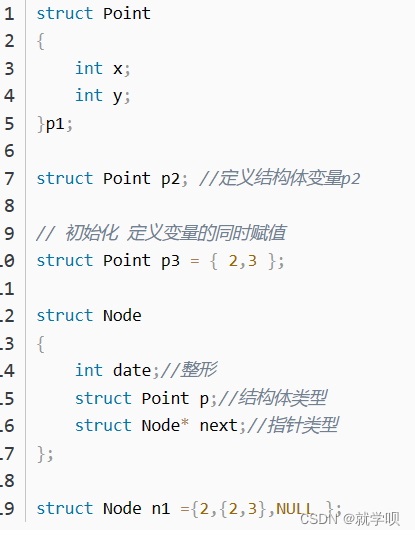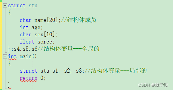 结构是一些值的集合,这些值称为成员变量。结构的每个成员可以是不同类型的变量。为什么会有结构体呢 有了int float这些类型的变量不就够了嘛?