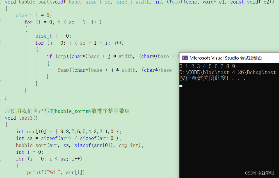 首先跟着qsort()的参数 我们来设计bubble_sort的参数