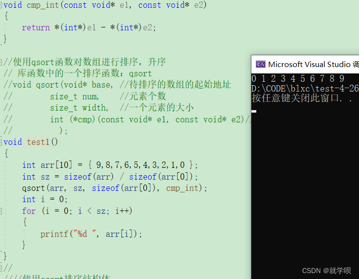 因为它只能比较整型数组 我们来实验一下结构体的排序