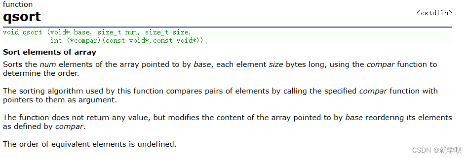 我们先到cpp网站浏览下qsort函数到底是什么样的