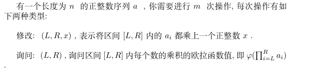 于是使用两颗线段树, 一颗记录乘积的信息, 一颗记录相关质数出现的信息,