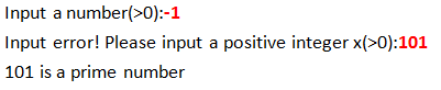 对于输入的一个正整数,判断其是否是素数。如果输入的不是一个正整数,还要求输出“Input error!”并提示用户重新输入直到输入正确为止。