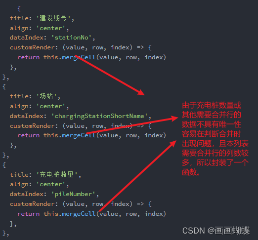 由于changingStationShortName 具有唯一性,不会出现与不该合并数据的值相同 所以封装一个方法,处理合并列问题。