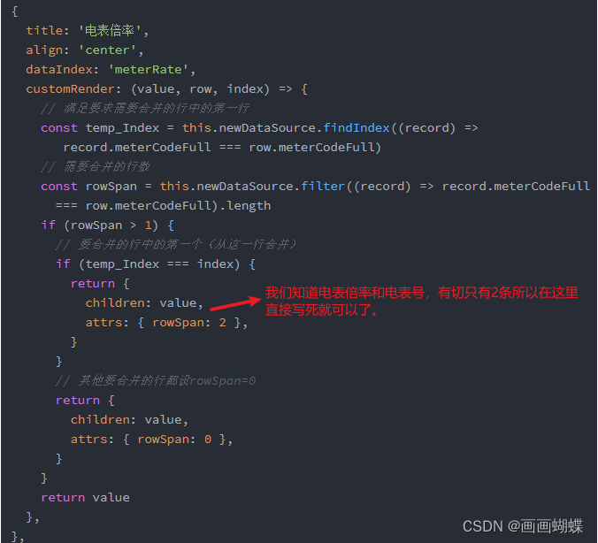 该博客详细介绍了如何使用Ant Design表格组件实现列合并功能,通过`customRender`属性结合`rowSpan`来控制单元格合并。文章强调了由于`chargingStationShortName`字段的唯一性,可以确保正确合并。同时,文中提醒在处理数据拆分时要注意分页问题,以避免错误的合并。示例代码展示了具体的实现方法,并附带了实际效果截图。