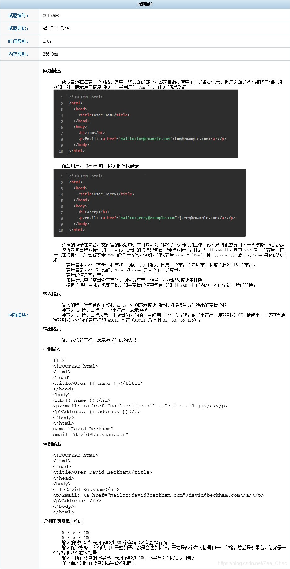 代码部分参考于日沉云起:CCF认证201509-3模板生成系统