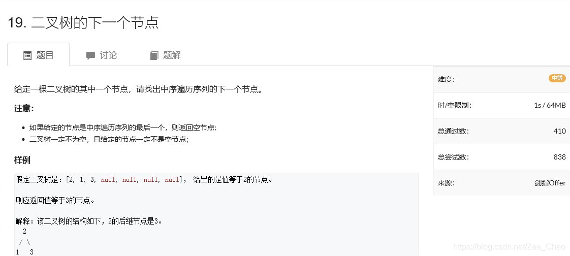 因此就得到了求后继节点的具体方法:如果当前节点存在右子树,则将指针指向有孩子节点,然后不断向左子树遍历找到左孩子为空的节点并返回。如果当前节点不存在右子树,则判断其父亲结点的左孩子是否为当前节点,是则返回,不是则向上遍历。