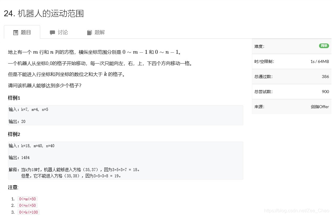相比于AcWing 23. 矩阵中的路径(DFS),这道题就可以使用BFS求解。因为这道题不是对指定次序的序列进行查找判断,而是对单点进行查找判断。