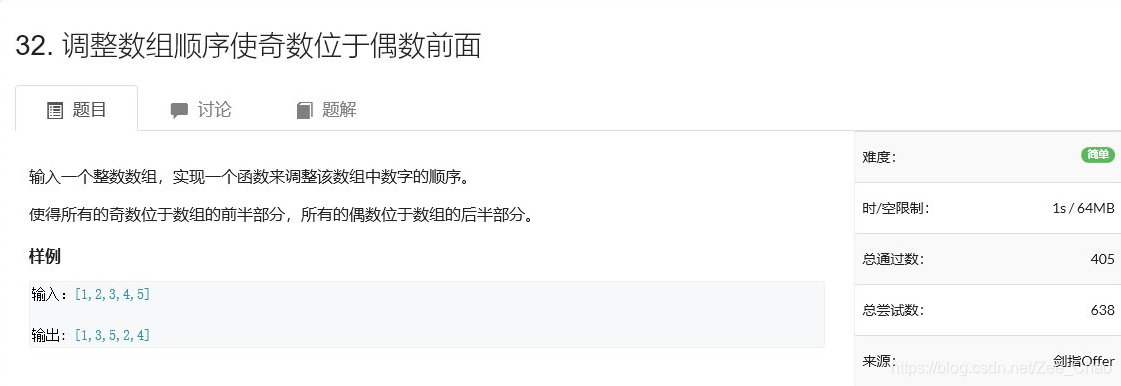 简单来说就是设置两个指针,一个从前向后遍历,另一个从后向前遍历。当前面的指针遇到偶数,后面的指针遇到奇数且前一个指针在后一个指针之前是交换两个数字。
