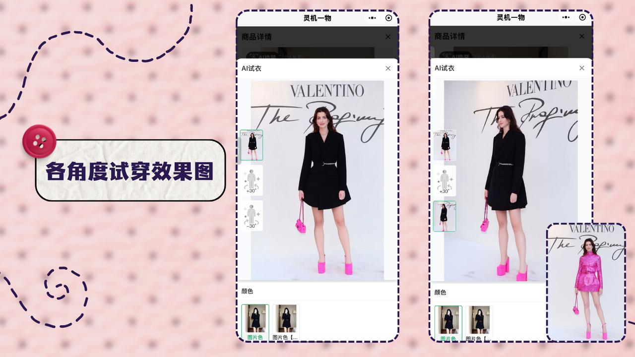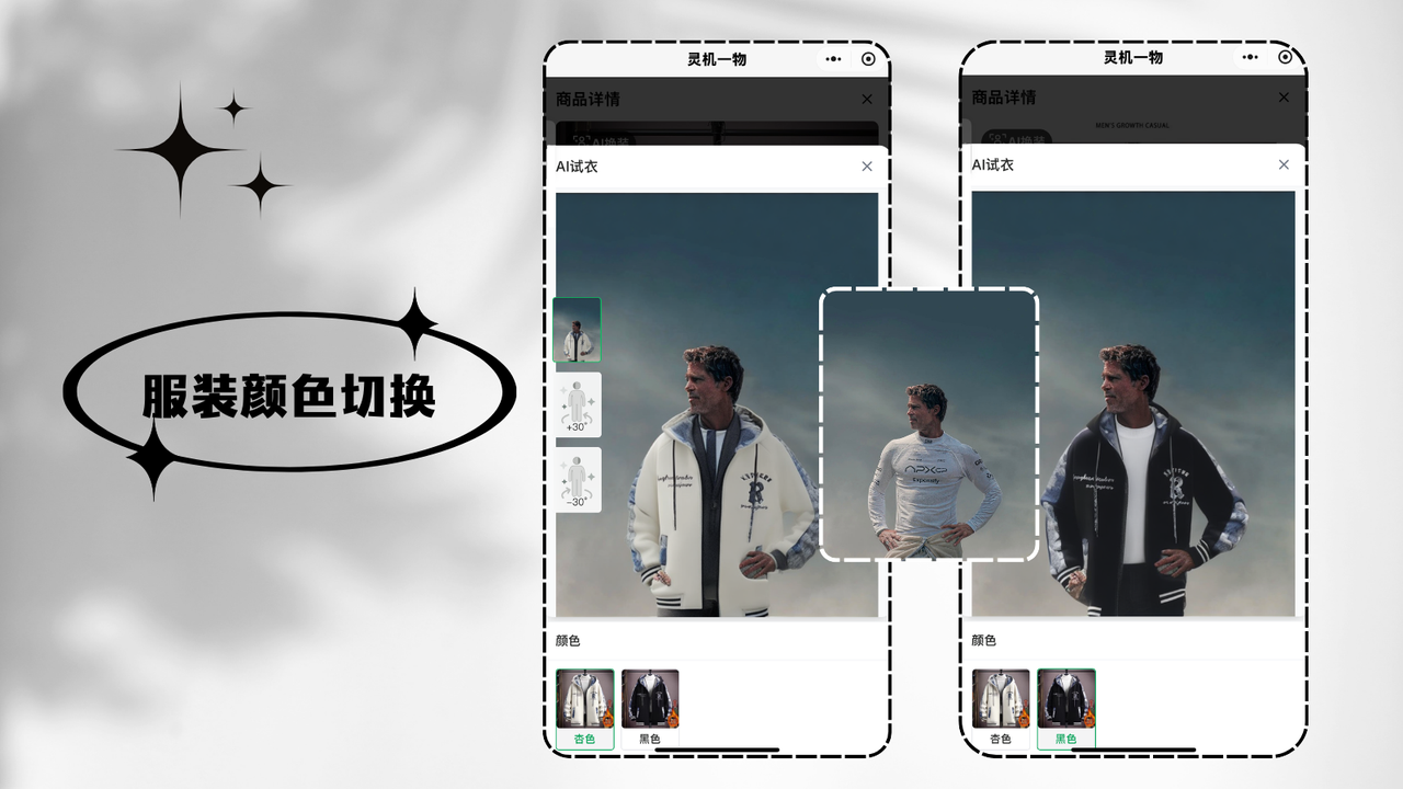 通过 AI 换装,用户可以上传自己的照片,由系统根据商品图、版型与颜色生成穿着效果预览。比起只看模特图和参数说明,看到“自己穿上之后大致是什么样子”,更有助于判断合不合适。