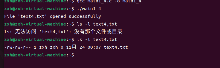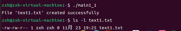小结:在本次代码中我发现了要避免在深层函数中调用 exit,那么不能用exit来结束程序怎么办呢,我们在 file_creat 中,用 return -1; 来表示失败,用 return 0; 来表示成功。main 函数负责全局控制它调用其他函数,检查它们的执行结果,并在必要时(例如,关键文件创建失败)决定终止程序。并且两次用creat都没有出现理想结果