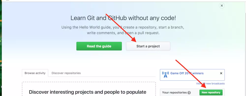 - 1、在GitHub上新创建一个 repository或者Start a Project,如图: