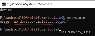 - 结果可能有三种情况:offline - 设备连接异常,device - 正常,unknown - 没有连接设备