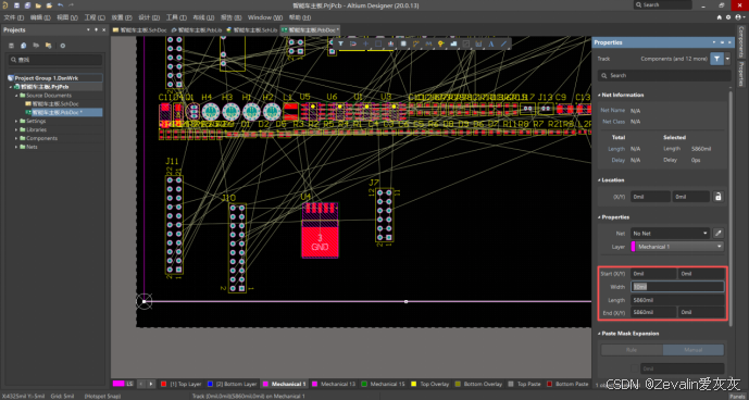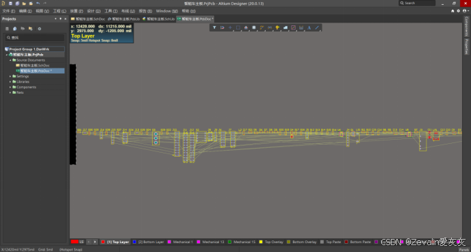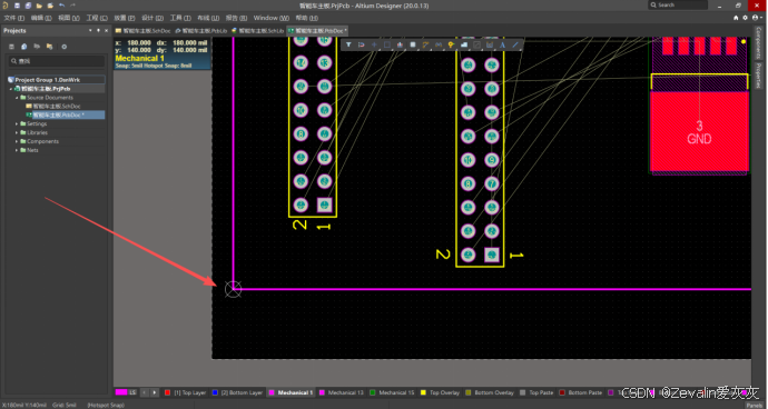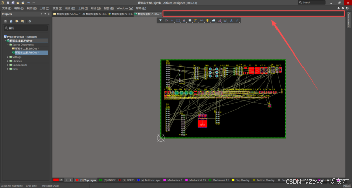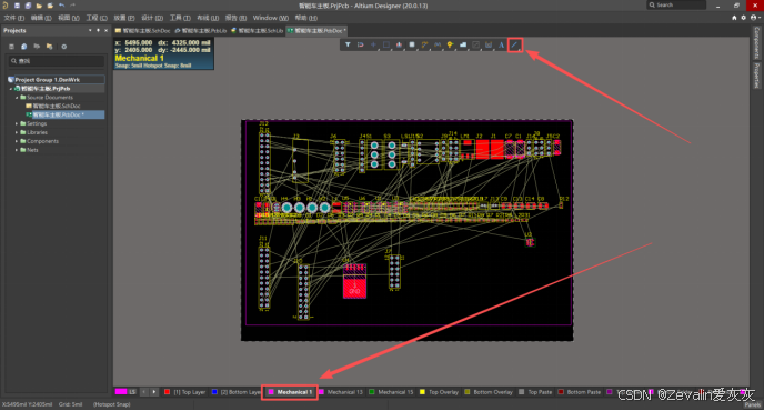 (1)将各器件的大致布局确定好后(需要注意,下图的布局是随意放置的,各器件具体如何布局可参考零基础入门篇),将所在板层切换为机械层,然后使用放置线条工具,可以绘制板框。
