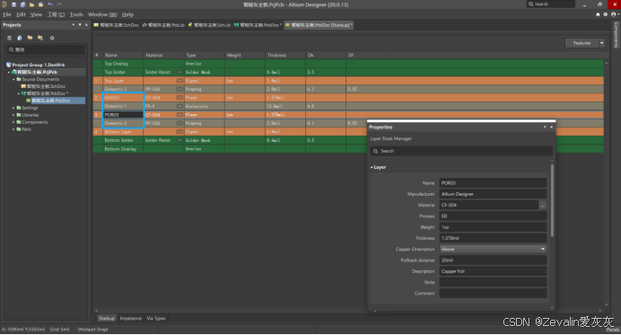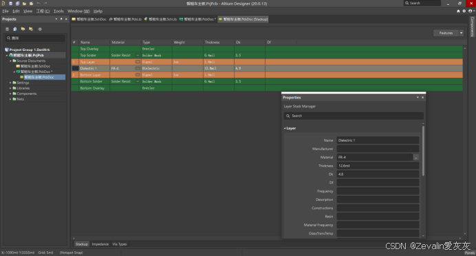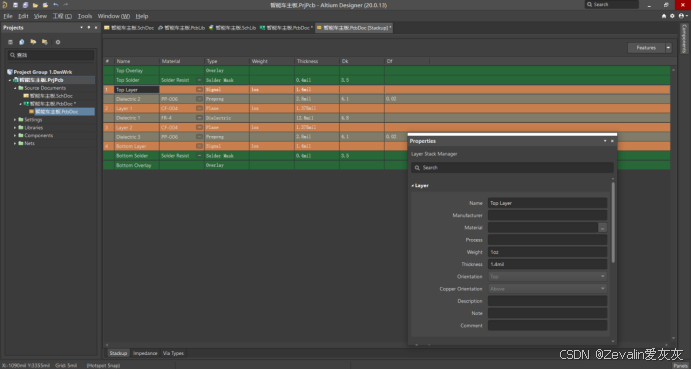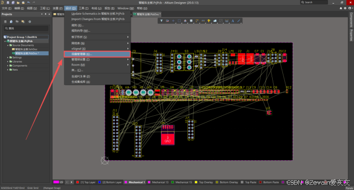 (2)选择菜单栏中的“设计”→“层叠管理器”,可以打开层叠管理器,其中黄色的两层分别为顶层和底层。
