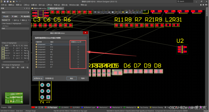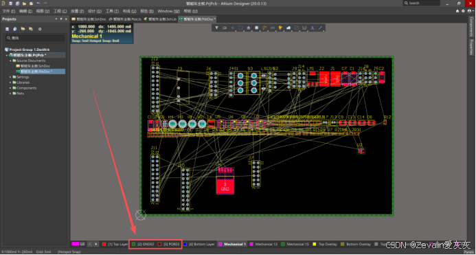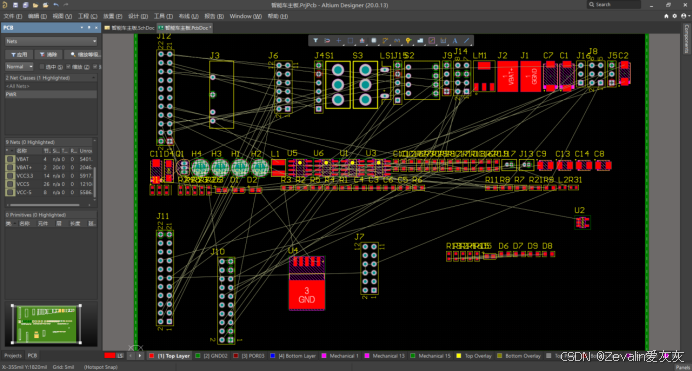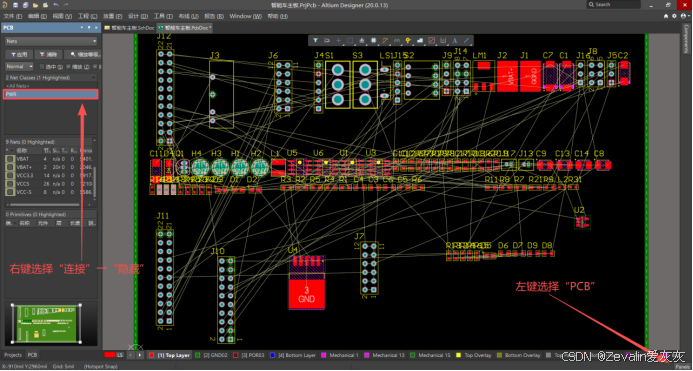 (1)PCB中有若干网络,可以对其进行分类,比如分为信号网络、电源网络等,一般GND网络和电源网络在布线初期可以隐藏,避免过多飞线干扰视图。