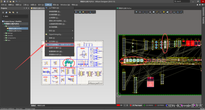 (2)按下Shift+Ctrl+X,亦或是在菜单栏中选择“工具”→“交叉选择模式”,进入交叉选择模式后,框选任意一边的器件,那么相对应另一边的器件也会高亮。