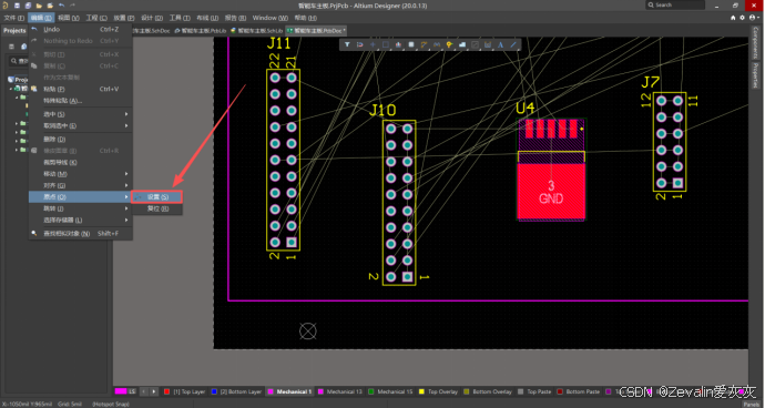 (2)板框绘制完成后,要将原点设置在板框的一个顶点上,一般设置在左边的顶点上,具体方法为选择菜单栏“编辑”→“原点”→“设置”,然后点击板框顶点即可,后续精调器件位置时都可以通过设置其坐标进行调整。