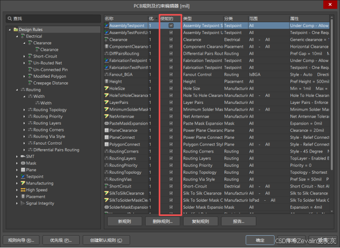 (1)不同项目要求不同,有时候虽然报了错误,但PCB是满足项目要求的,对此可以更改检查规则,将不需要检查的错误全部屏蔽即可(一般必须保留线宽规则、器件间隔规则、短路规则和开路规则)。