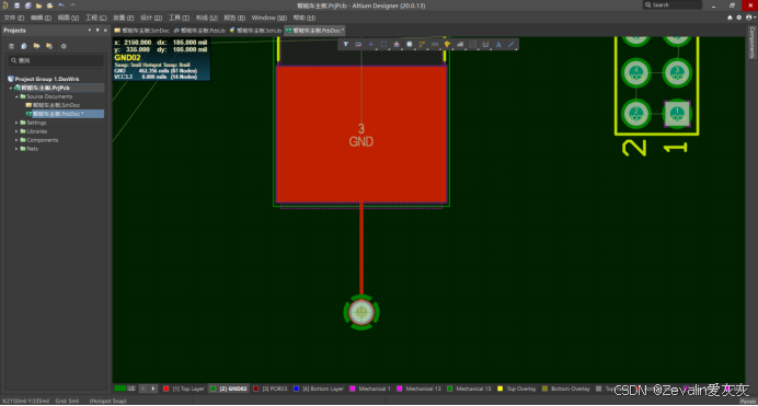 PCB在设计的时候也有规则,如果不满足规则(比如两个焊盘挨得太近、封装管脚短路等),那么相应封装就会报出绿色错误或者圆圈错误(短路错误)。