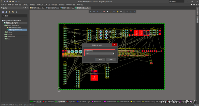 ②Plane负片层——在整版铜片上走线,走线区域为绝缘体,非走线区域为铜。